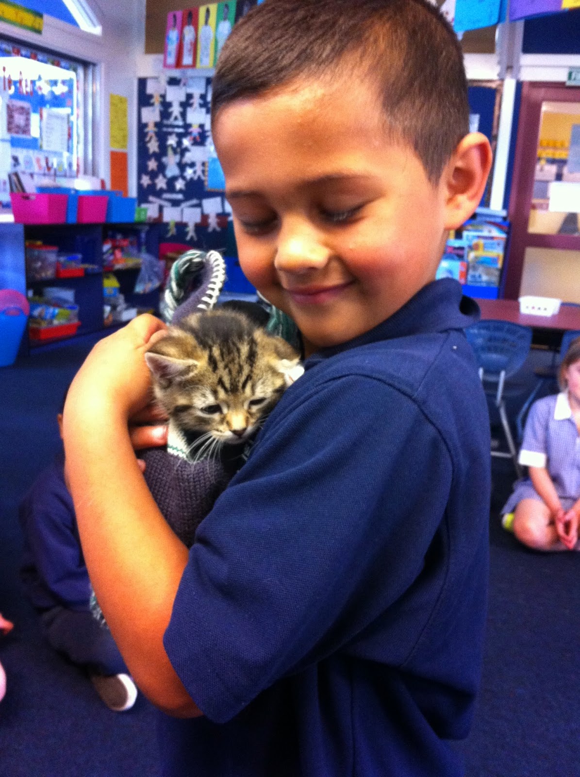 Today we had a special visitor in K4. Ikya brought his kitten along to school. Isn't she cute?
